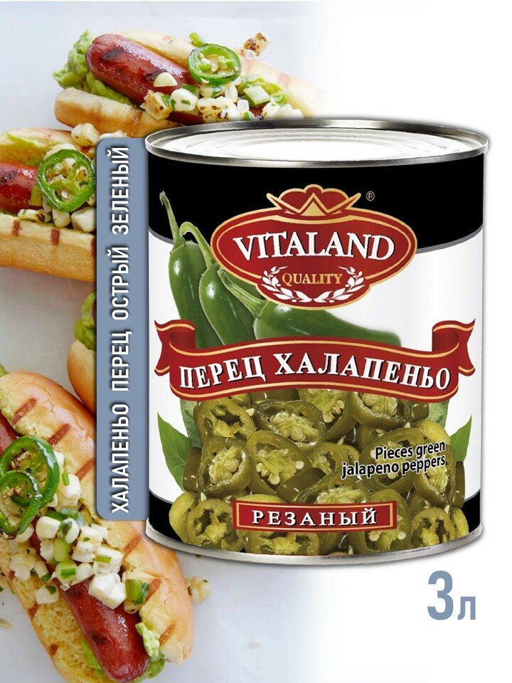 10 цен на Зеленый перец халапеньо VITALAND резаный острый в рассоле, 3 л