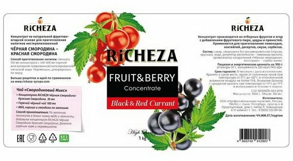Концентрат Основа для приготовления напитков Ричеза Черная и Красная Смородина, натуральный концентрат для чая, коктейля, лимонада, 1 кг. информация: