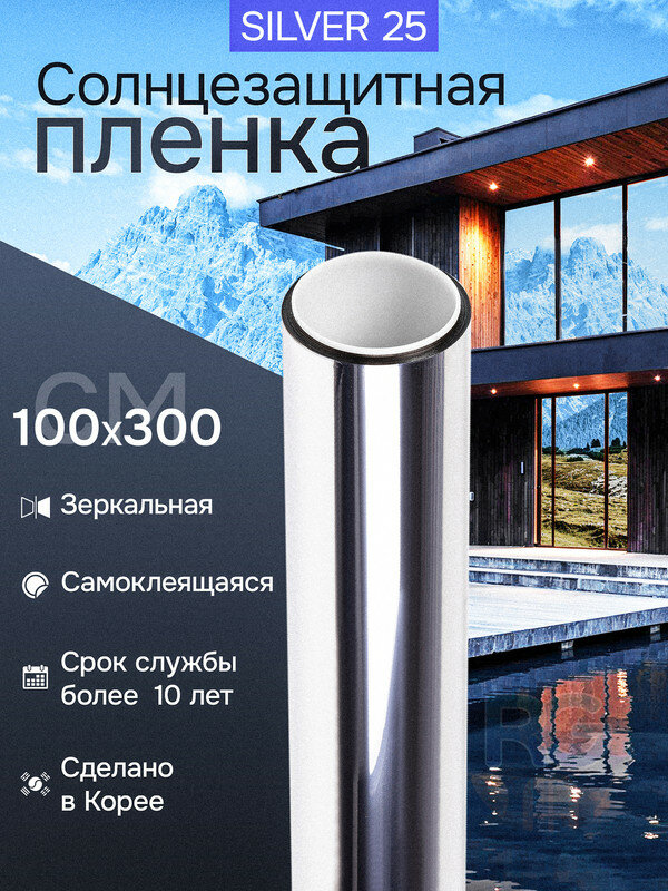 Самоклеющаяся пленка для окон Silver 25 Reton Group. Зеркальная пленка самоклеющаяся - 100х300 см информация: