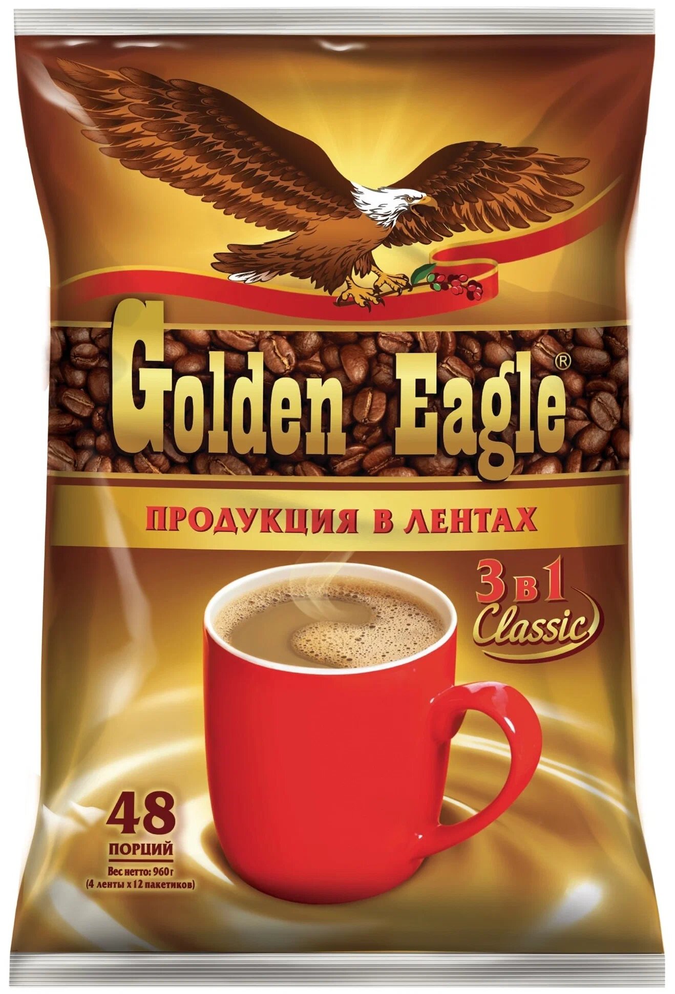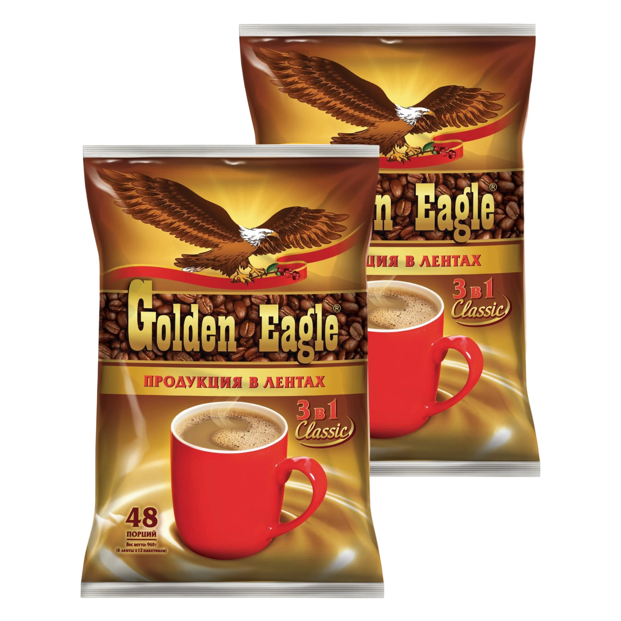 Кофейный напиток Golden Eagle Classic 3 в 1, в лентах, 2 упаковки по 48 пакетиков информация:
