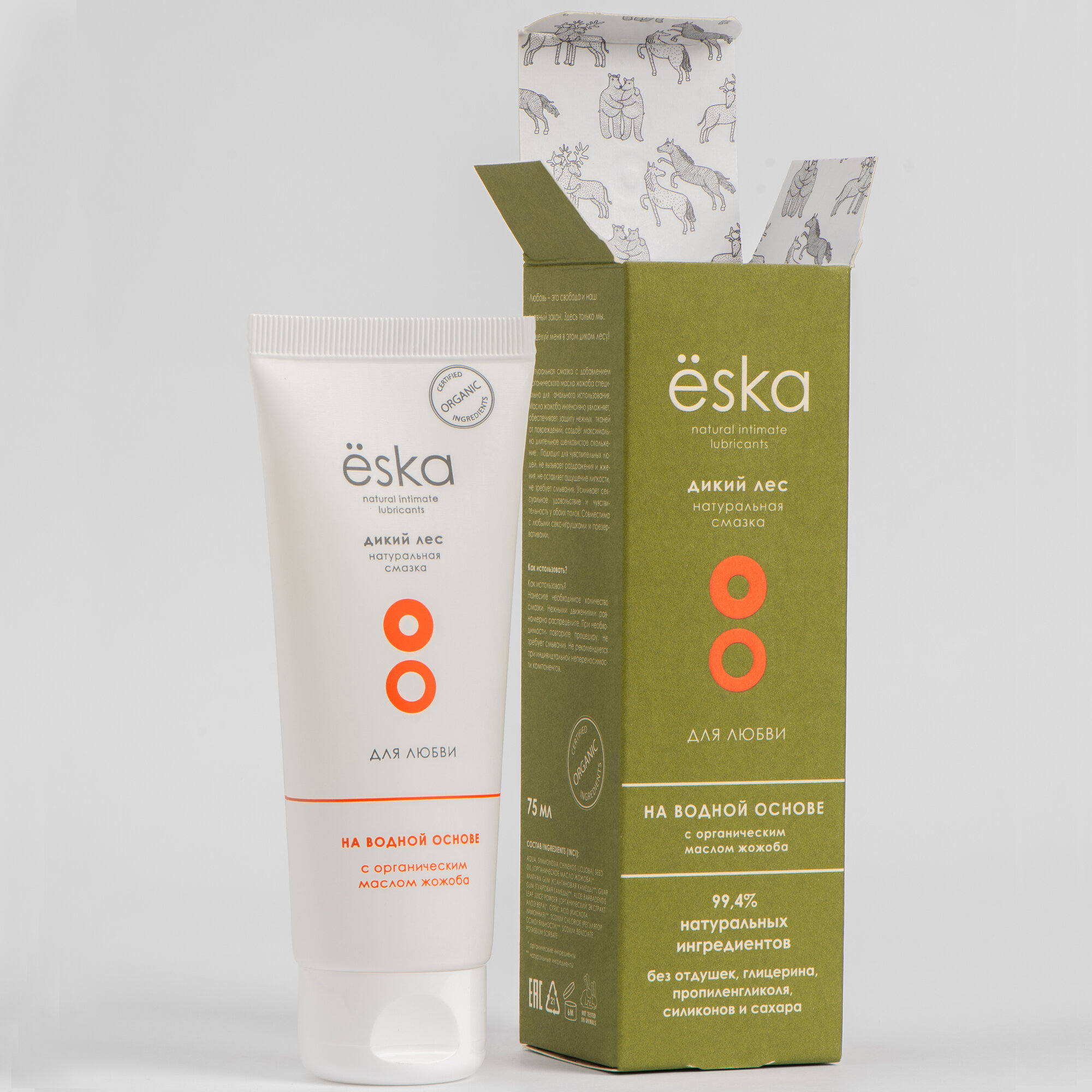 Натуральный лубрикант Ёska "Дикий лес" на водно-масляной основе без вкуса и запаха для анального секса, 75мл. информация: