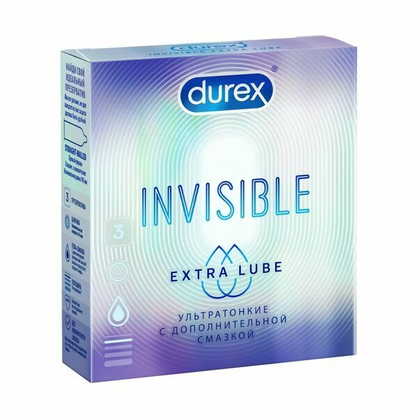 10 цен на Презервативы из натурального латекса Extra Lube Invisible Durex/Дюрекс 3шт