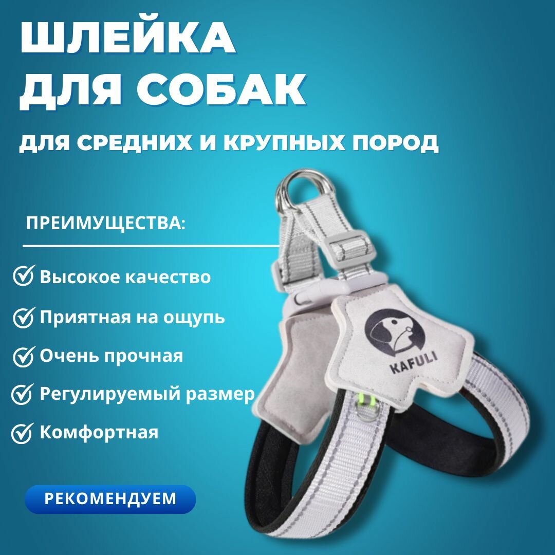 Отзывы на Шлейка для крупных и средних собак с анатомической формой и светоотражающими элементами