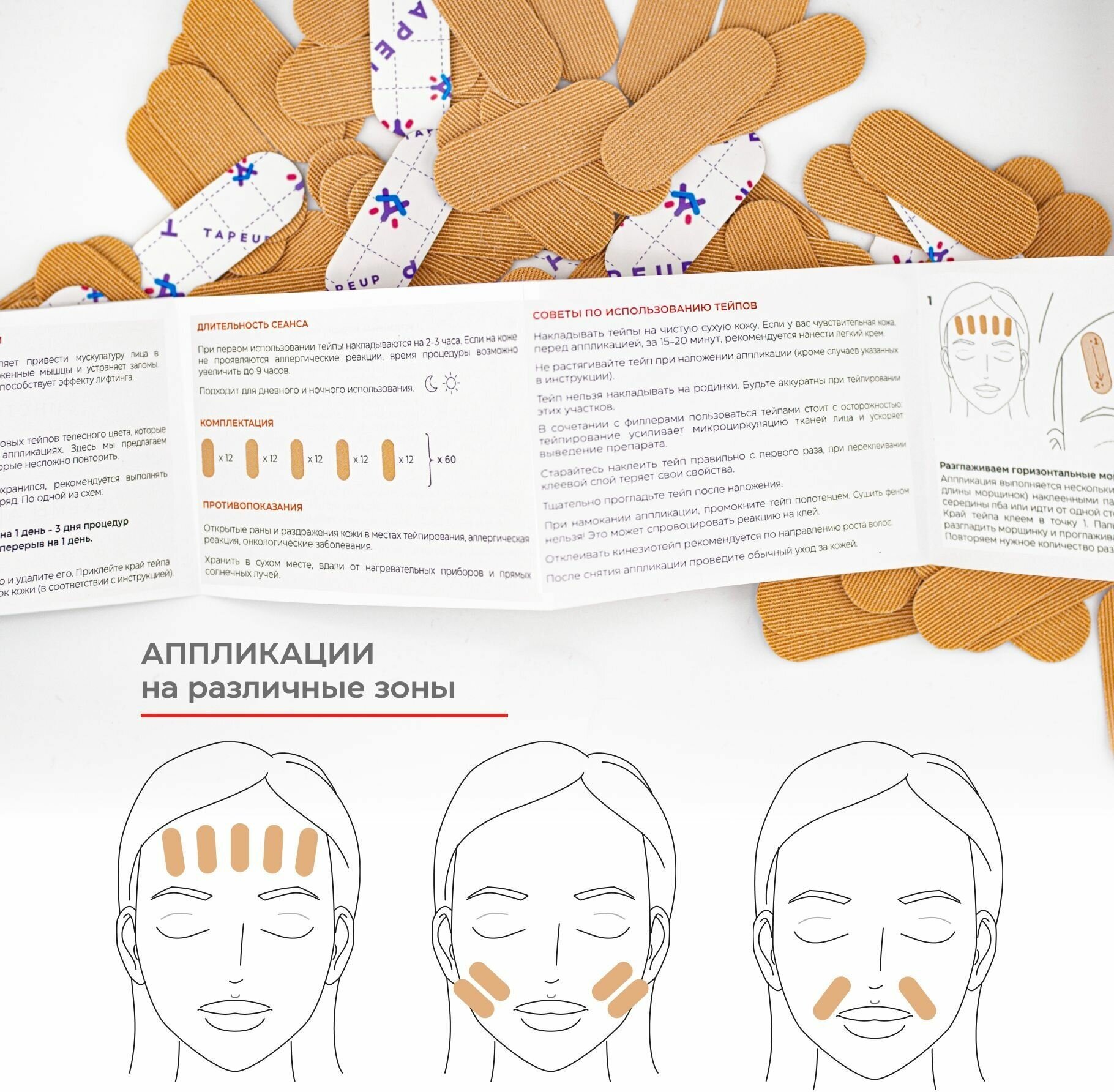 10 цен на TAPEUP CANDY NUDE/ Преднарезанные кинезио тейпы для лица готовые к аппликации/ против морщин и отеков