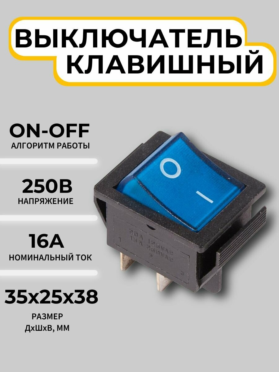 Выключатель клавишный 250V 16А (4с) ON-OFF синий с подсветкой Rexant информация: