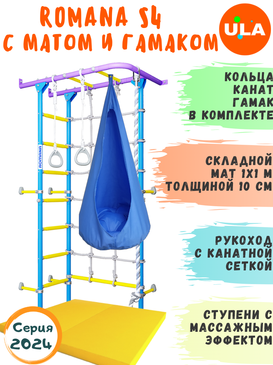 Комплекс ROMANA S4 с матом 1х1 м и гамаком, цвет сиренево-голубой информация: