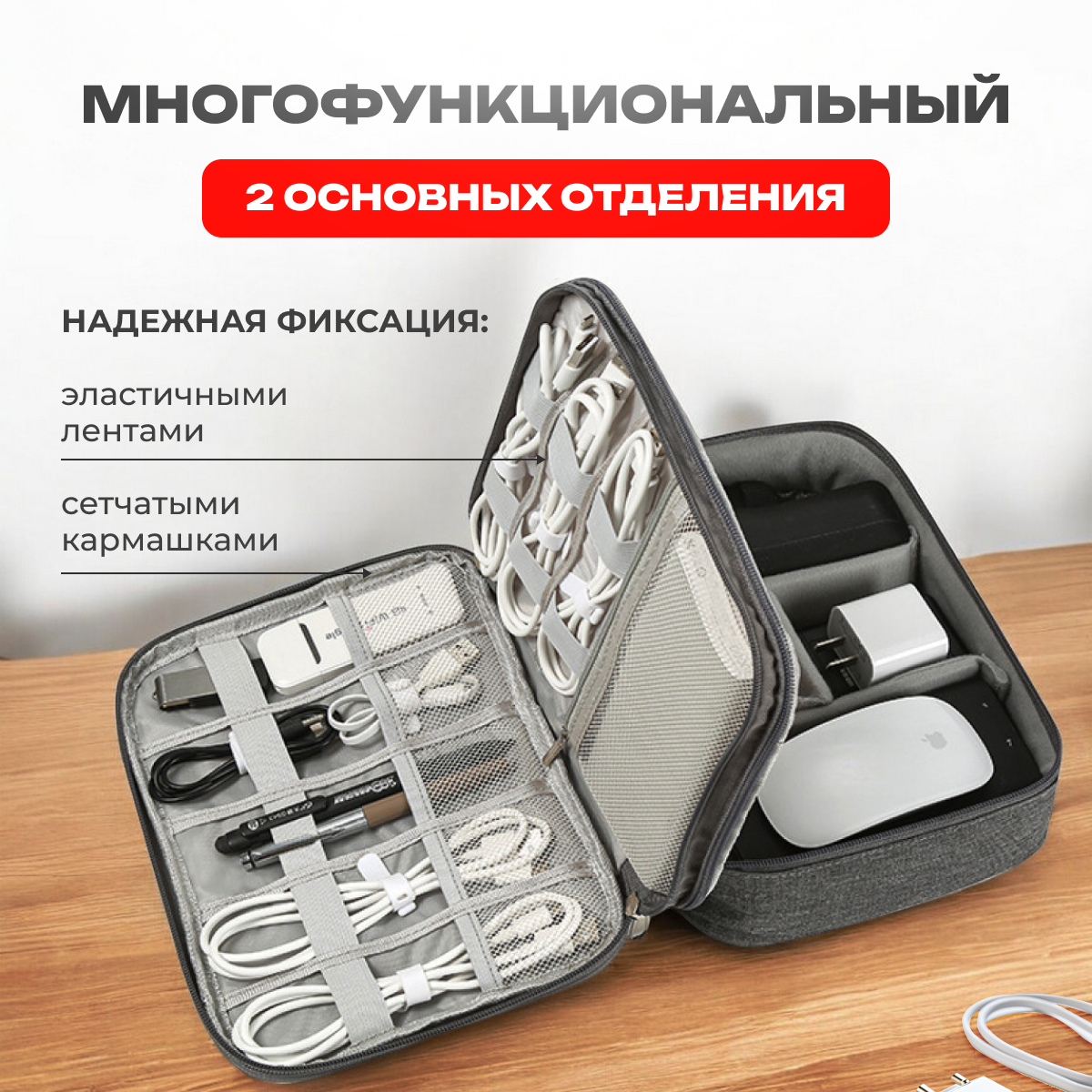 10 цен на Сумка органайзер для проводов, зарядок, аксессуаров, серый