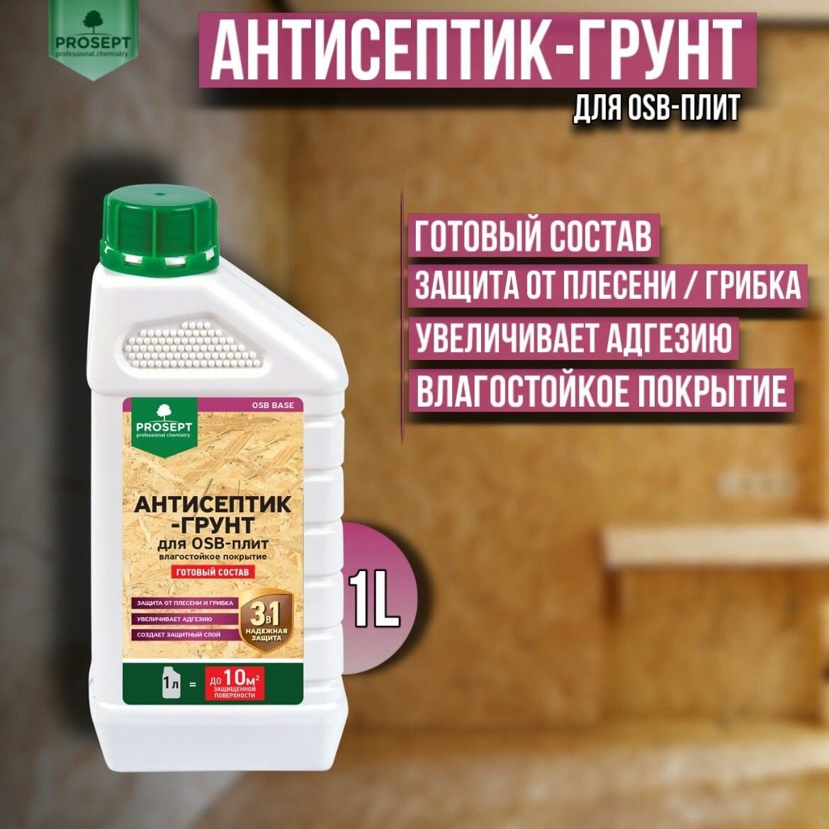Антисептик-грунт для OSB-плит PROSEPT OSB BASE готовый состав 1 литр информация: