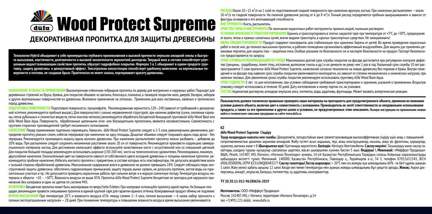 Пропитка по Дереву Dufa Wood Protect Supreme 0.75л Белая, Гибридная для Внутренних и Наружных Работ / Дюфа Вуд Калор Суприм. информация: