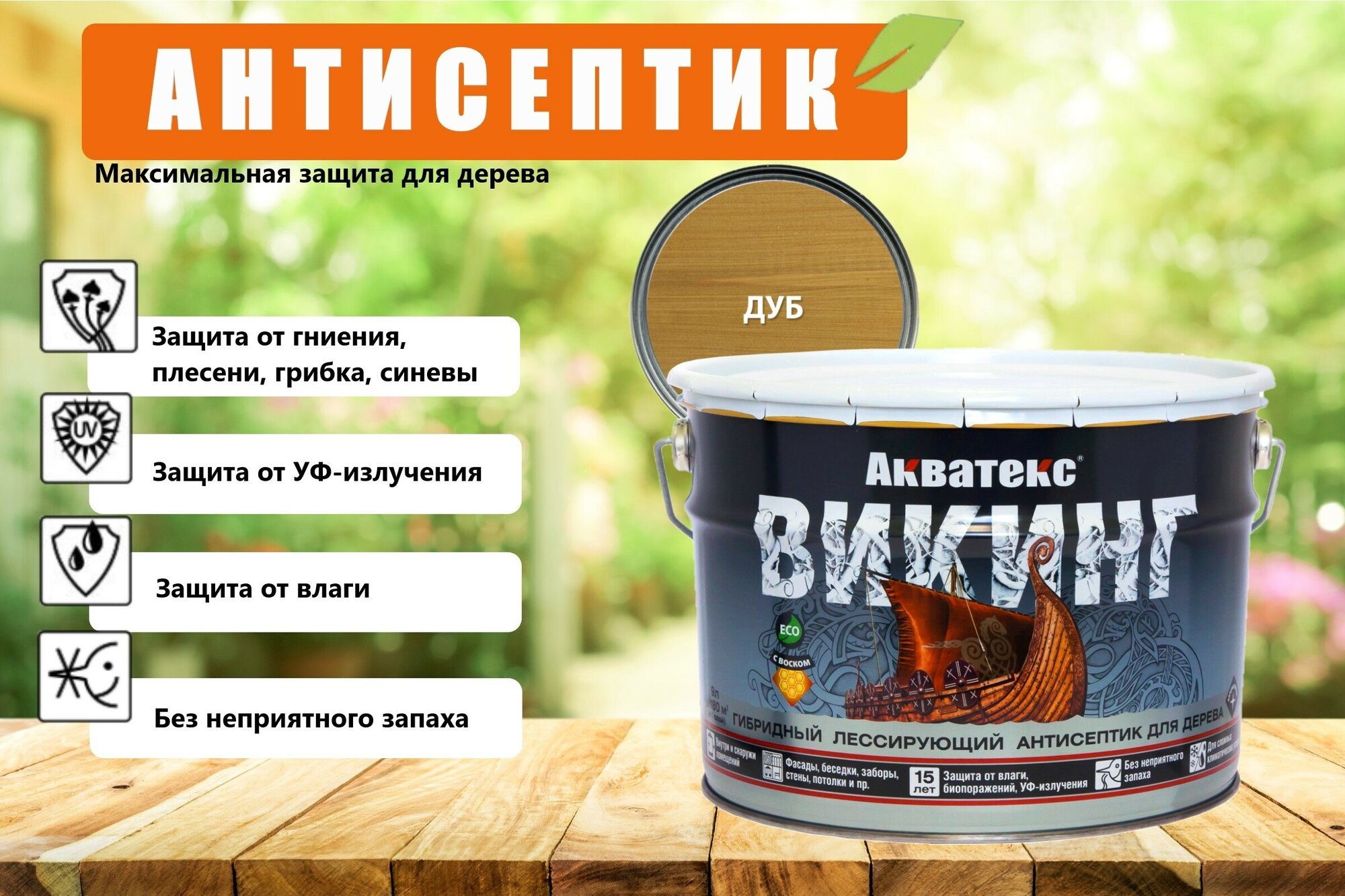 Гибридный лессирующий антисептик для дерева акватекс викинг (дуб / 9л.) информация: