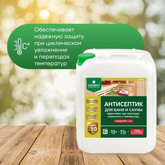 Антисептик для внутренних работ PROSEPT SAUNA концентрат 1:10 / 5 л информация: