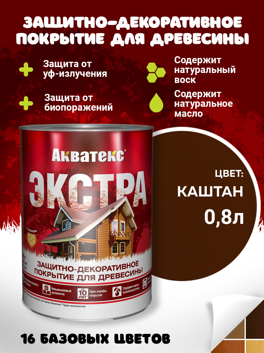 Пропитка для дерева Акватекс экстра защитно-декоративное покрытие, каштан, 0,8л информация: