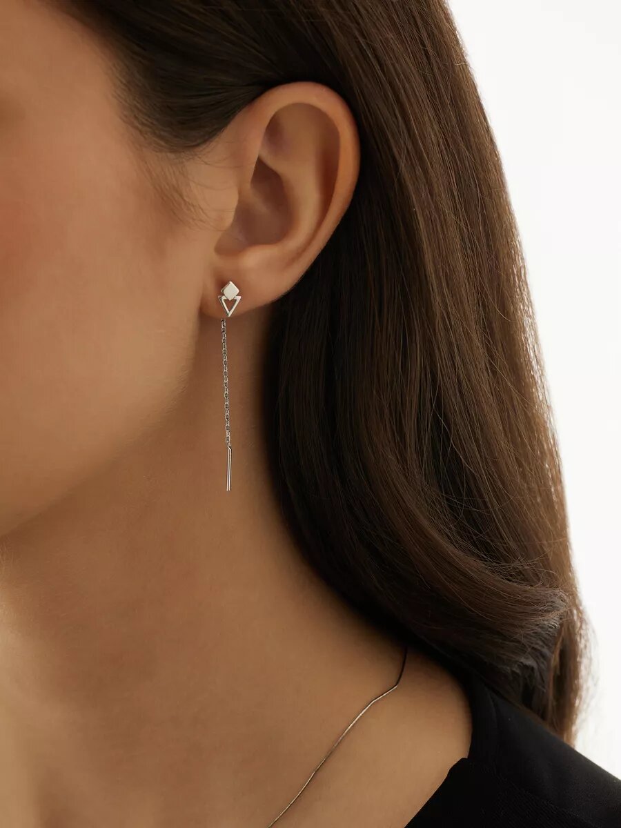 10 цен на Серьги серебряные 925 пробы длинные протяжки Ромб, продевки цепочки Треугольник, ср.вес изделия 0,8 гр, арт. 2029971/9