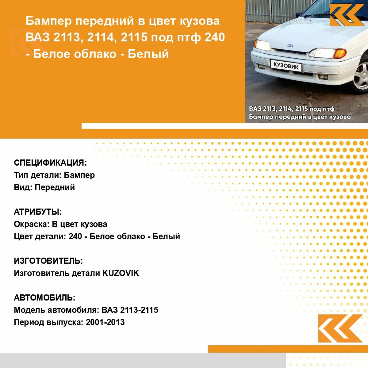 Бампер передний в цвет кузова ВАЗ 2114 2115 2113 под птф 240 - Белое облако - Белый информация: