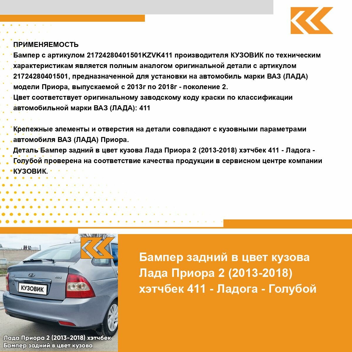 10 цен на Бампер задний в цвет кузова для Лада Приора 2 (2013-2018) хэтчбек 411 - Ладога - Голубой