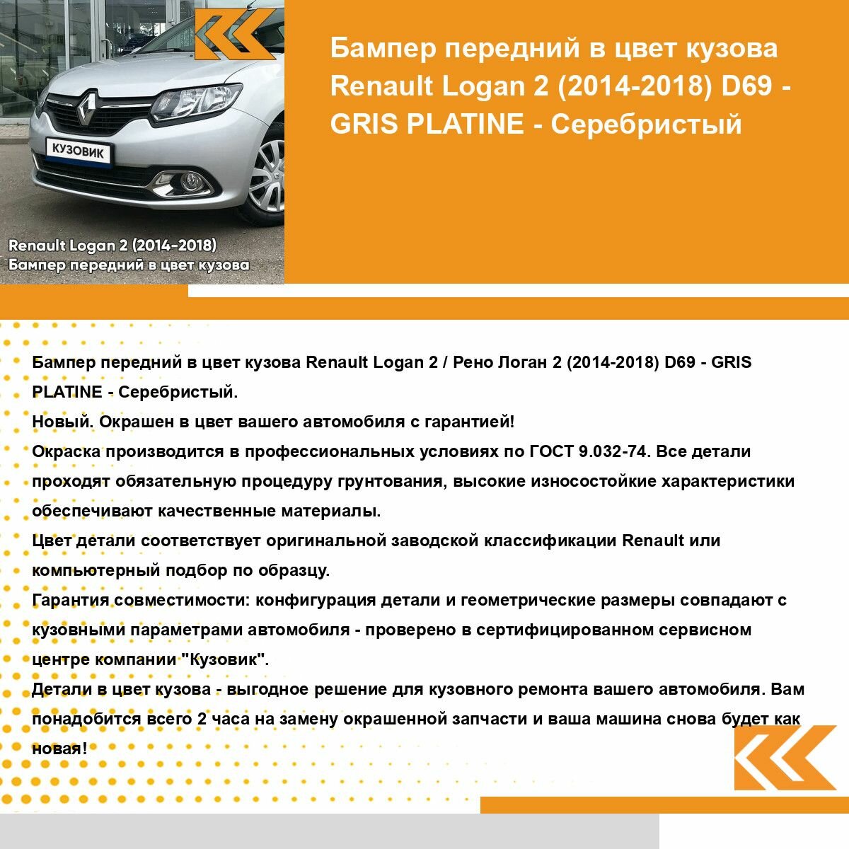 Отзывы на Бампер передний в цвет кузова для Рено Логан 2 Рено Сандеро 2 Renault Logan 2 / Renault Sandero 2 (2014-2018) D69 - GRIS PLATINE -Серебристый