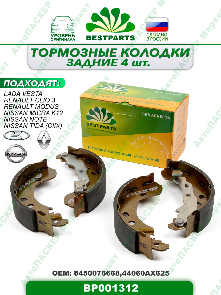 Колодки тормозные задние LADA Vesta BESTPARTS BP001312