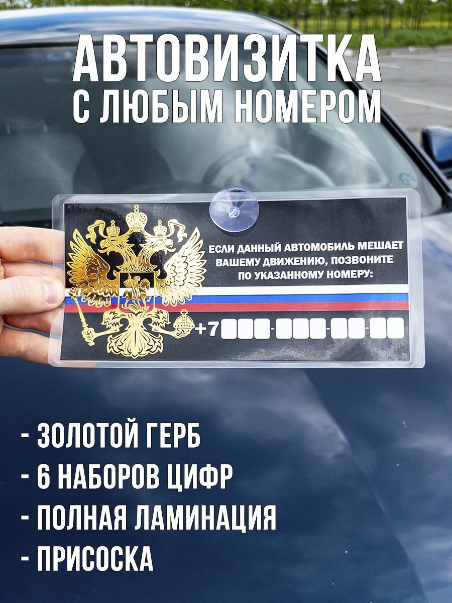 Автовизитка с номером телефона / парковочная табличка для авто - с золотым гербом России 514 ₽