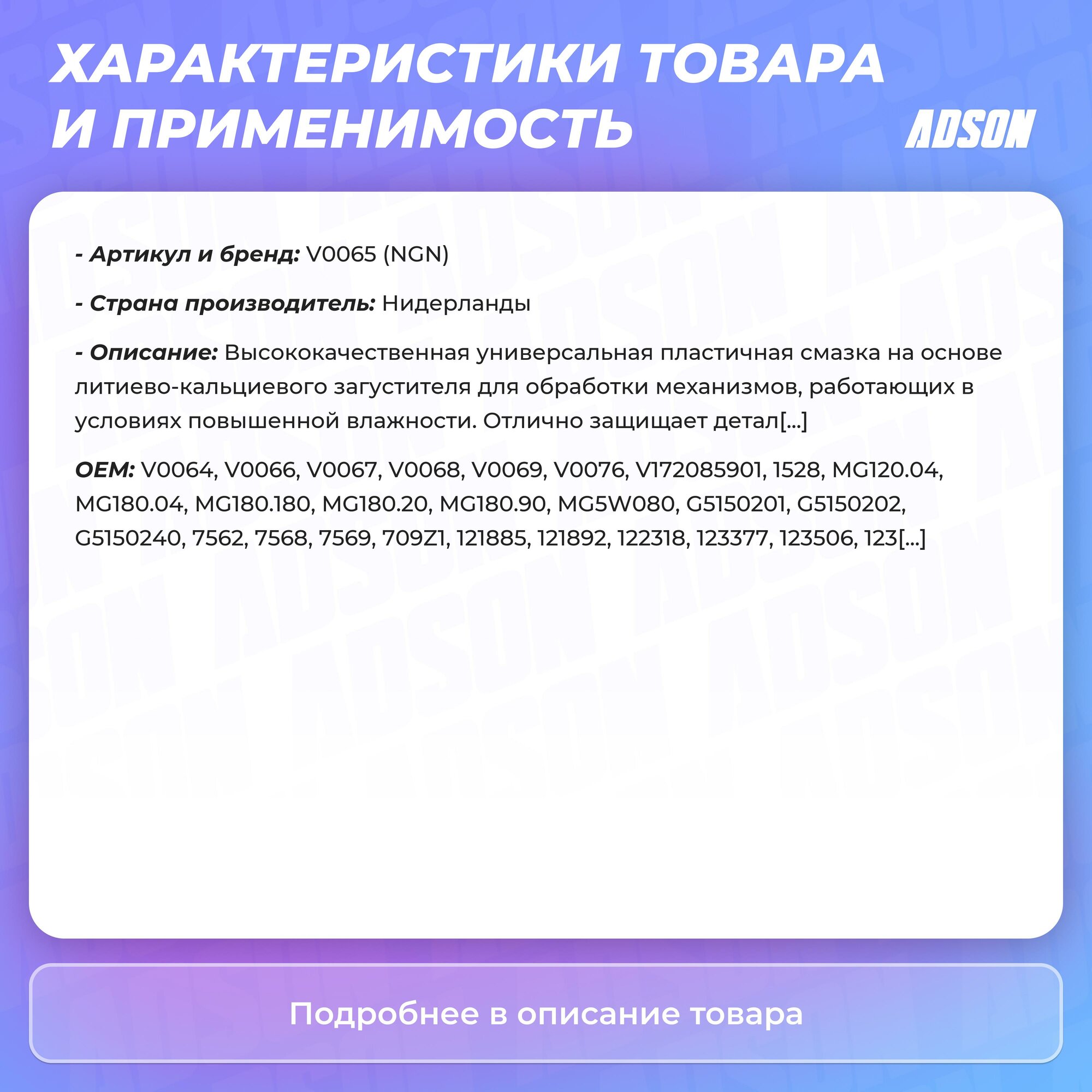 NGN V0065 V0065 Water-Resistant Bearing Grease Смазка подшипниковая водостойкая 175 г NGN информация: