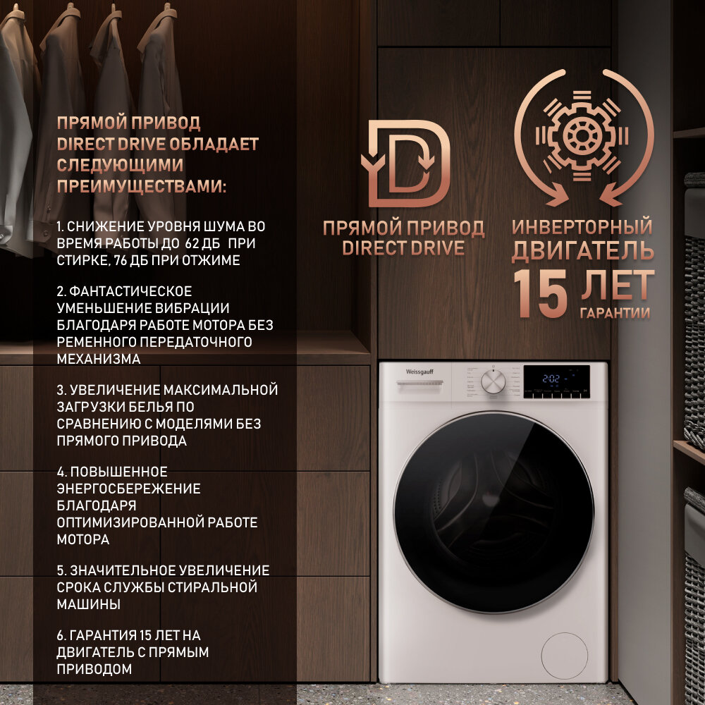 Cтиральная машина с сушкой, прямым приводом Weissgauff WMD 58411 Direct Drive Steam информация: