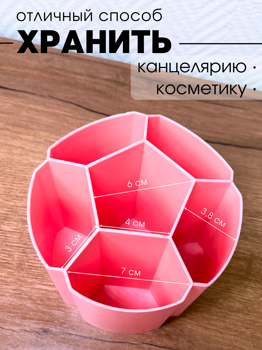 Отзывы на Органайзер для хранения канцелярии подставка для карандашей и ручек 6 отделений, розовый
