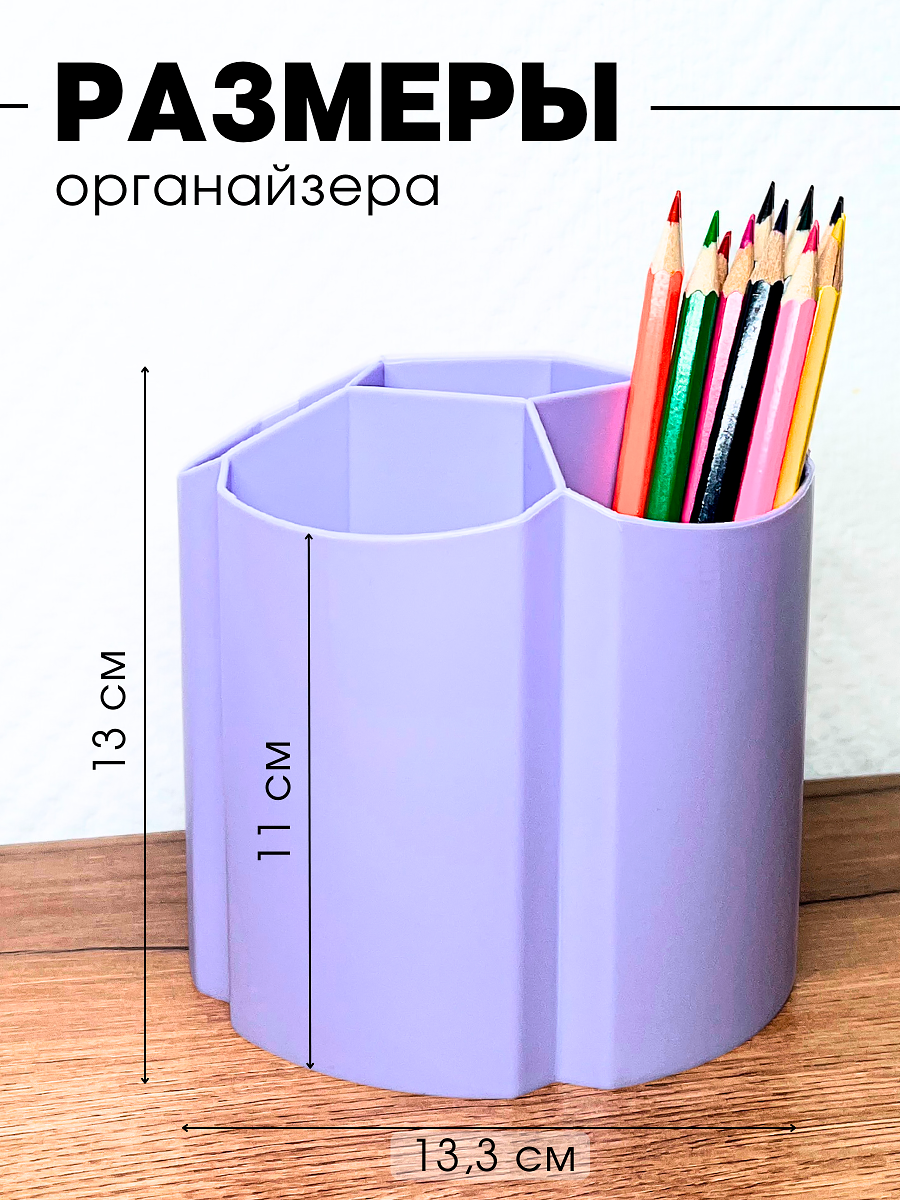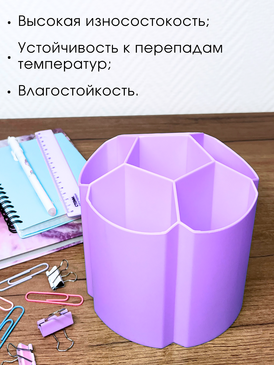 Отзывы на Органайзер для хранения канцелярии подставка для карандашей и ручек 6 отделений, фиолетовый