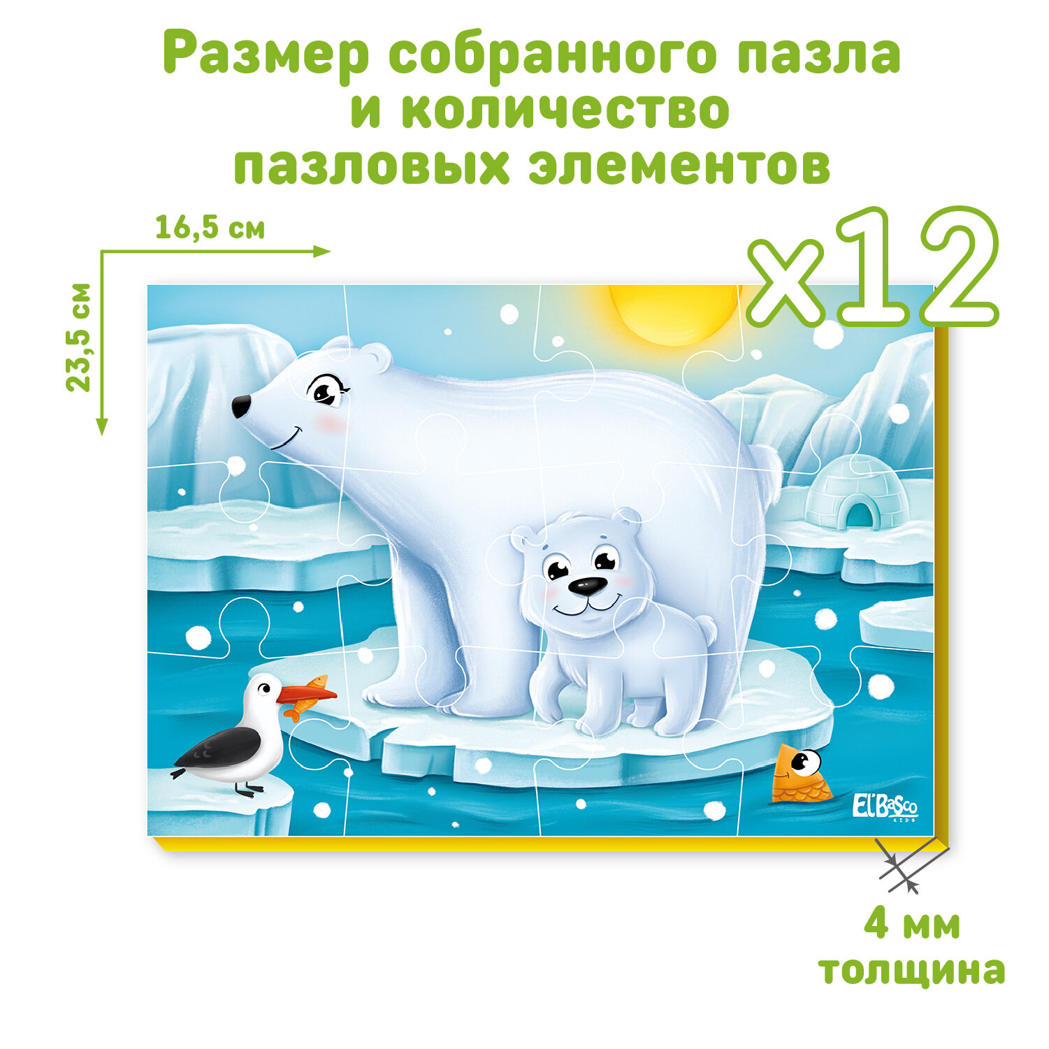 Развивающая игра Пазл Elbascokids Белые мишки 21х15 см 12 элементов информация:
