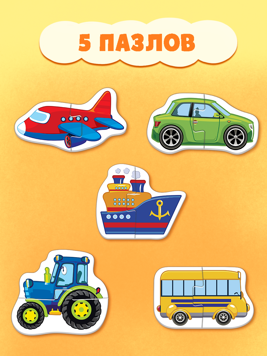 Макси-пазлы "Весёлый транспорт", 5 пазлов, 10 деталей, Puzzle Time информация: