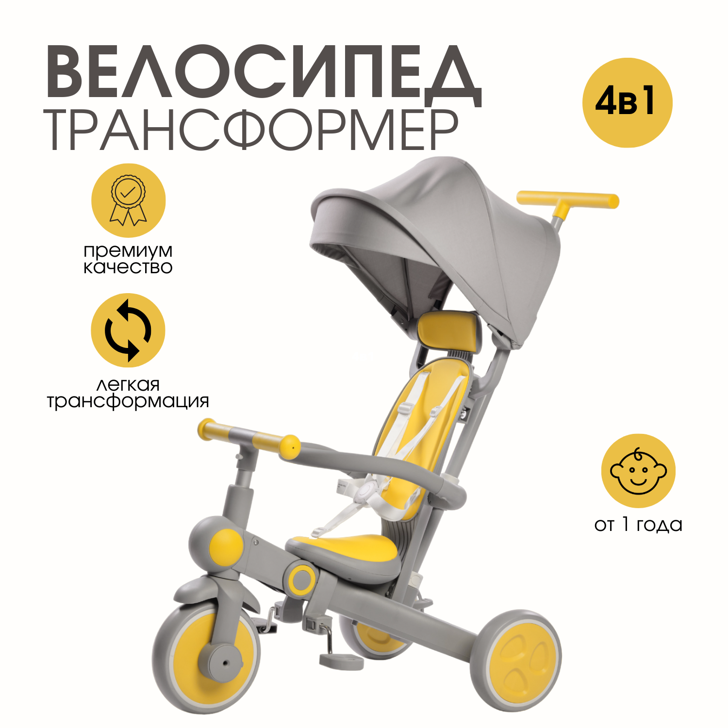 | Комплектация | велосипед, педали, бампер, родительская ручка, капюшон |