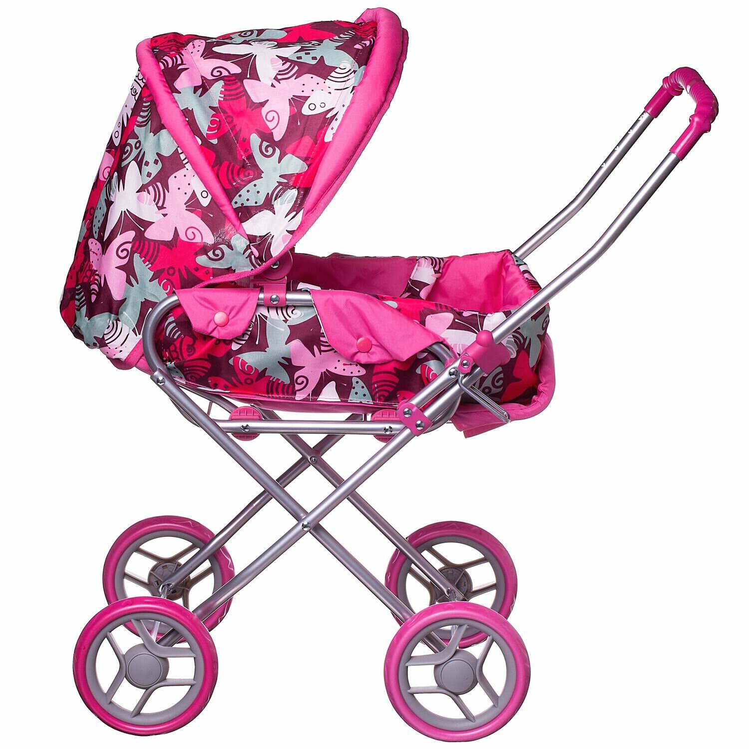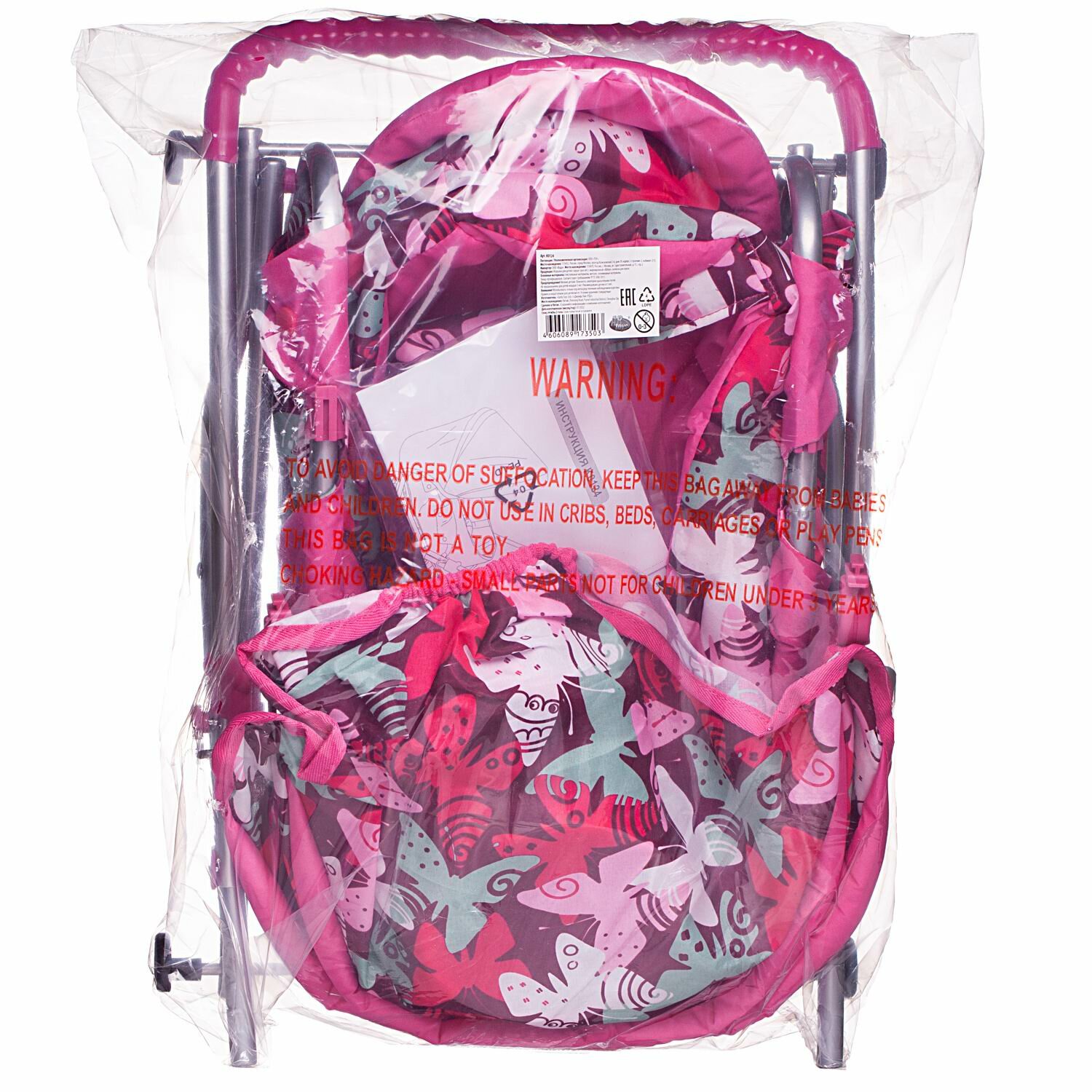 Коляска-трансформер 3в1 для куклы прогулочная со съемной люлькой, (принт бабочки), 61х35х66 см. - Abtoys
