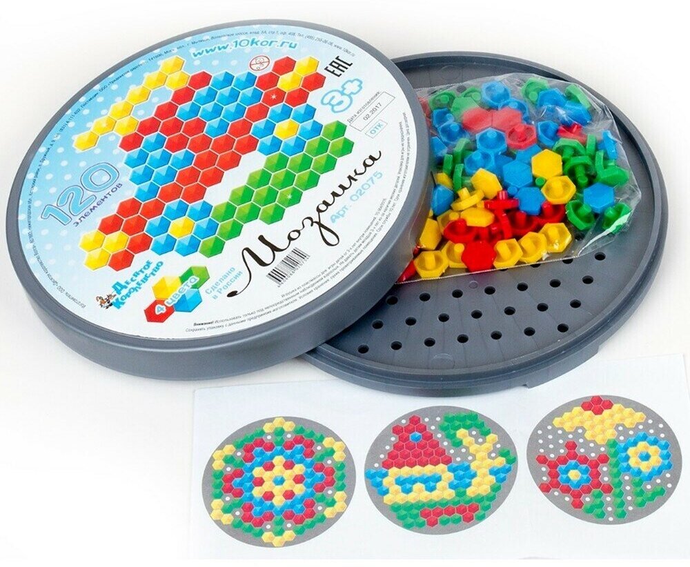 10 цен на Мозаика шестигранная 120 фишек (круглая коробка)