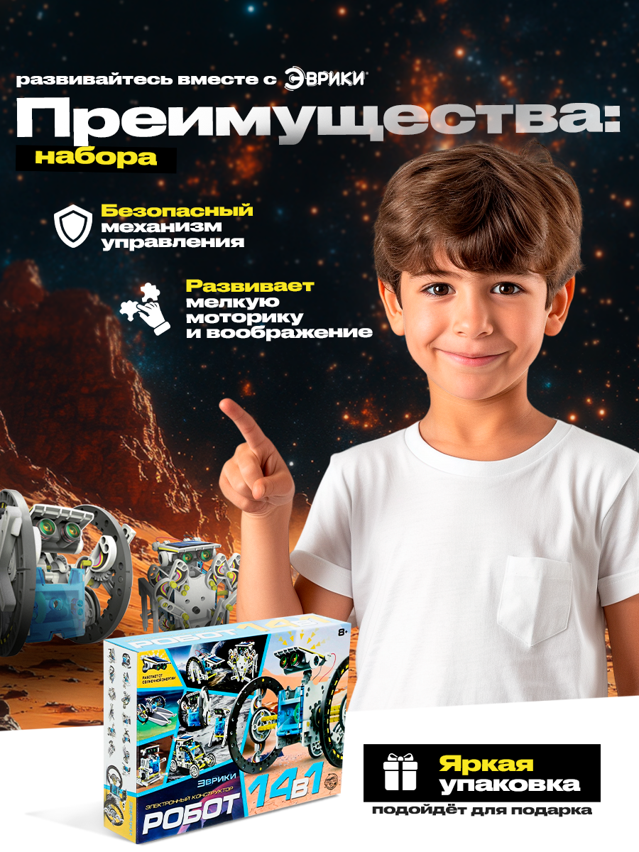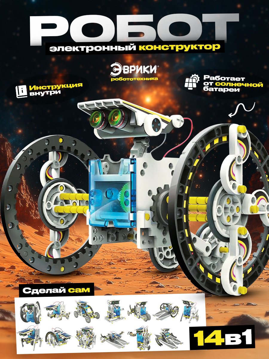 Отзывы на Электронный конструктор "Робот", 14 в 1, работает от солнечной батареи, Эврики