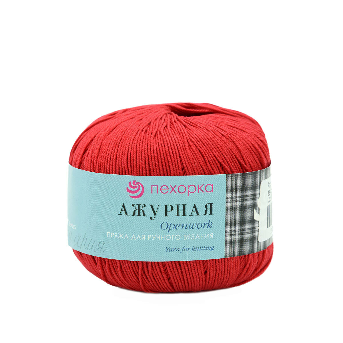 Пряжа для вязания Пехорка Ажурная (комплект 1 шт), цвет: 088-Красный мак, состав: 100% - мерсеризованный хлопок, вес: 50 гр, длина: 280 м информация:
