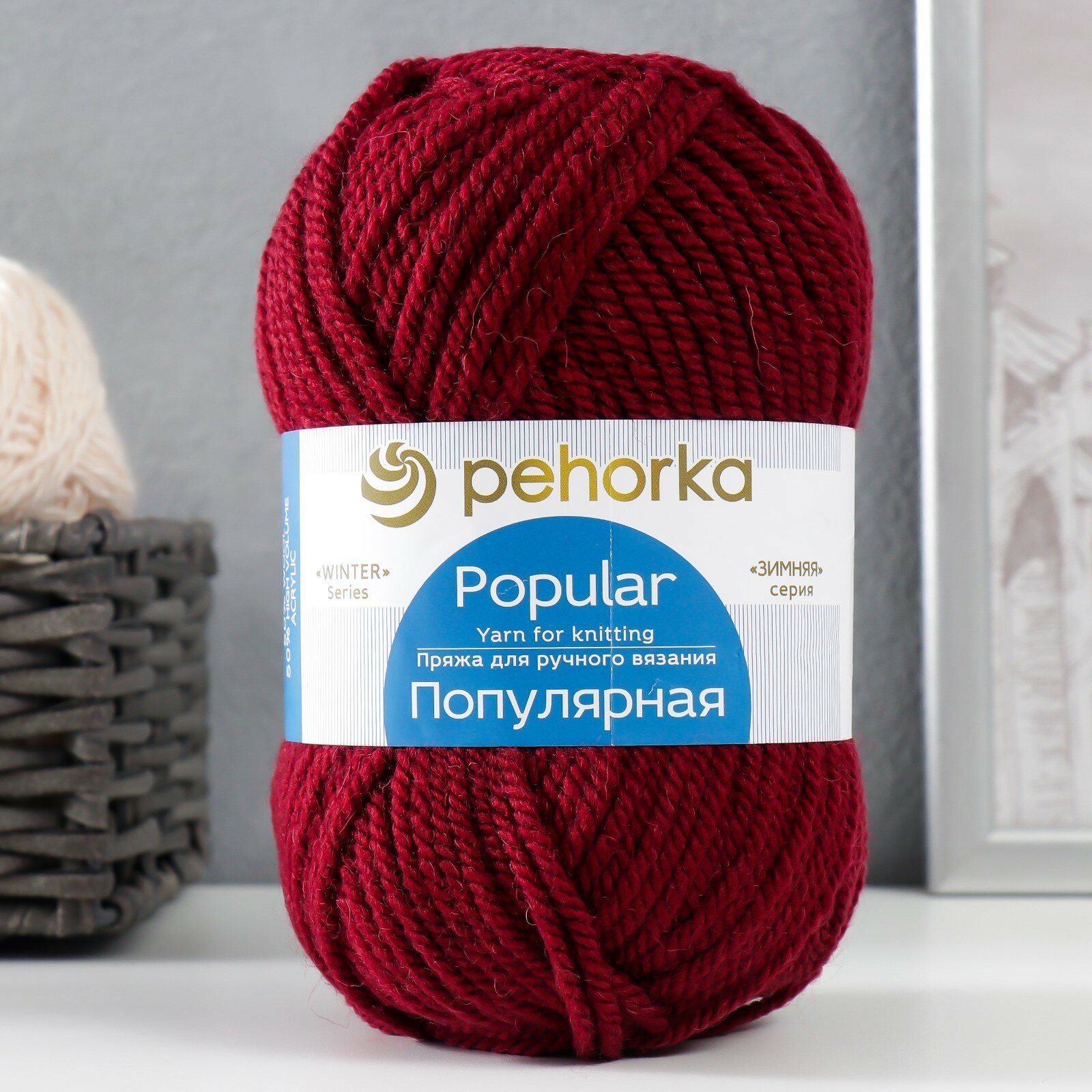 10 цен на Пряжа Пехорка Популярная, 07 бордо, 100 г, 133 м, 50% шерсть, 45% акрил, 5% акрил высокообъемный, 1 шт.