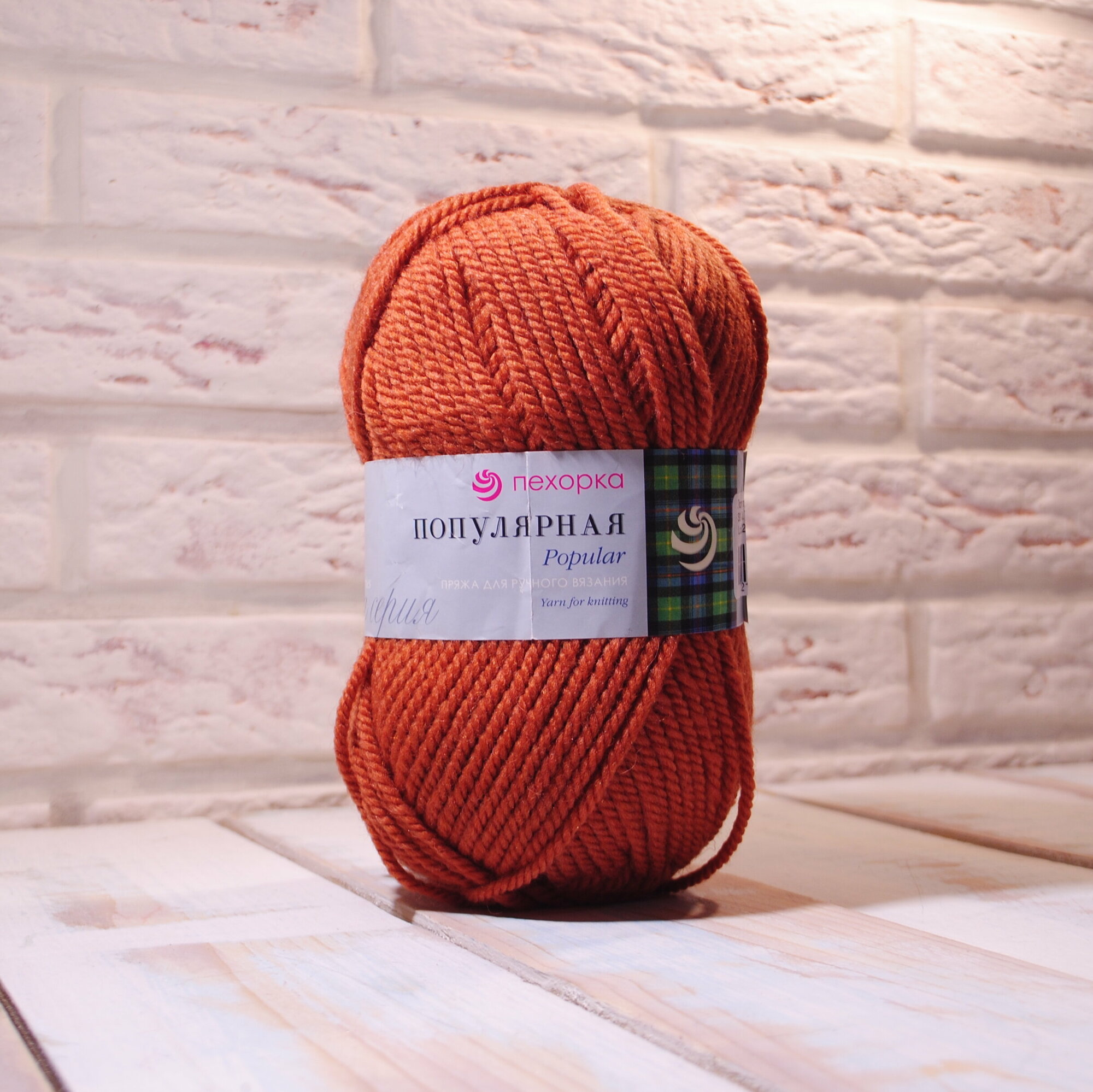 10 цен на Пряжа Пехорка Популярная, 30 св.терракот, 100 г, 133 м, 50% шерсть, 45% акрил, 5% акрил высокообъемный, 1 шт.