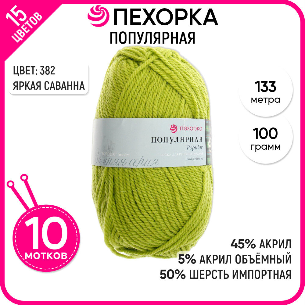 Пряжа для вязания Пехорка "Популярная" полушерсть, 10 шт, Яркая саванна №382 информация: