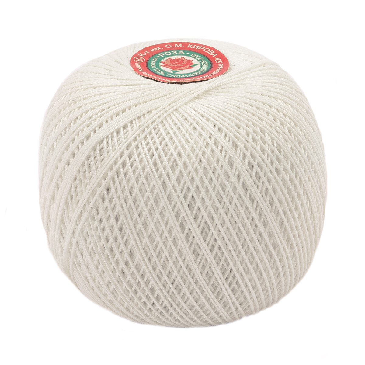 Нитки для вязания крючком ПНК им. Кирова 'роза' (100% хлопок) 50г, 330м (0101 белый), 6 мотков