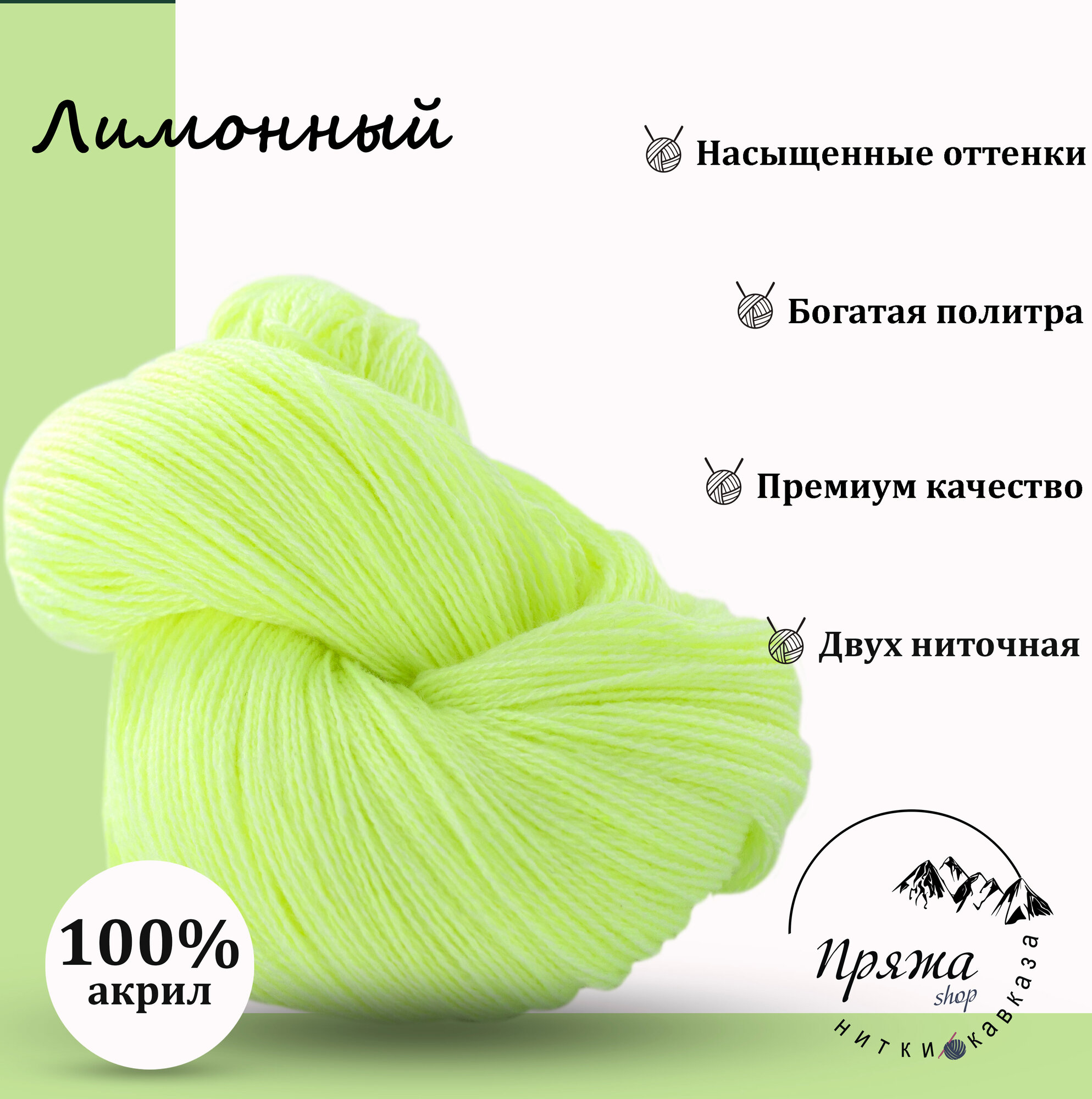 Карачаевская пряжа мягкая в пасмах нитки 100 % акрил для вязания 600-650м/250-280гр, Лимонный информация: