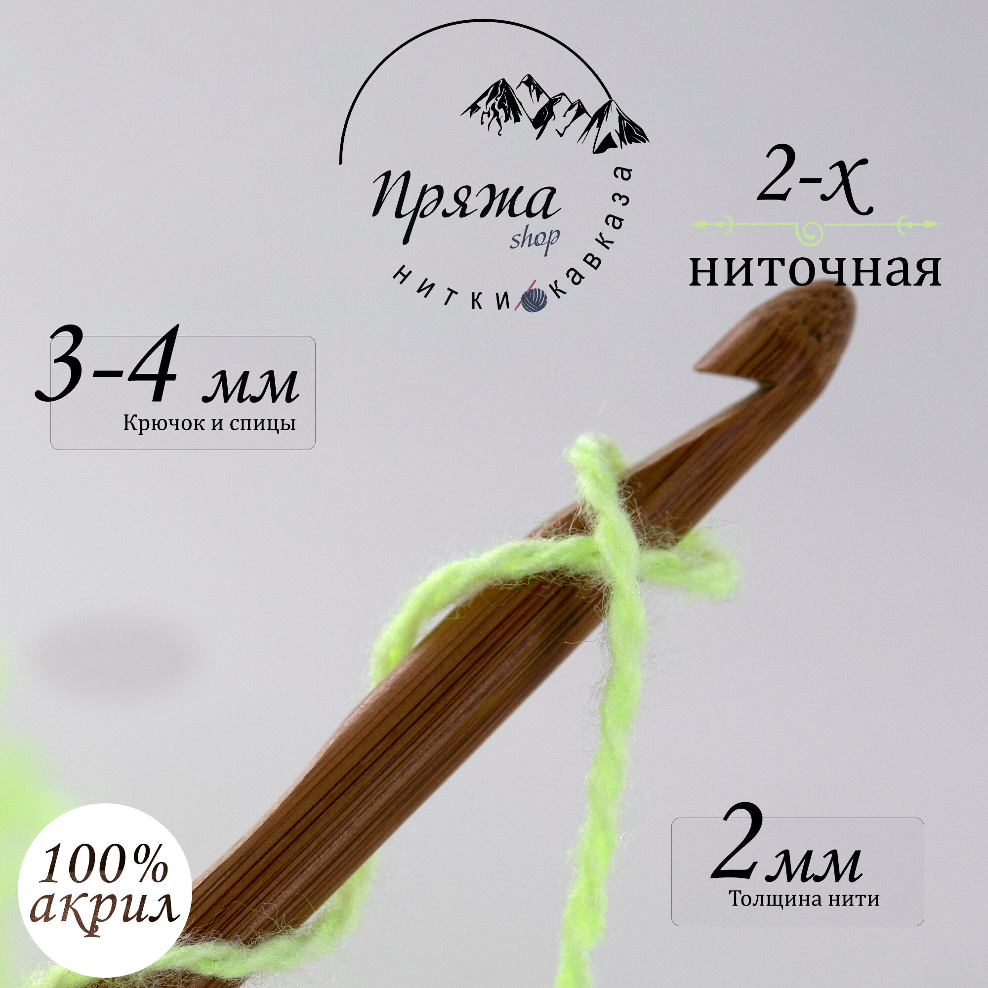 Карачаевская пряжа мягкая в пасмах нитки 100 % акрил для вязания 600-650м/230-260гр, Фисташковый 390 ₽