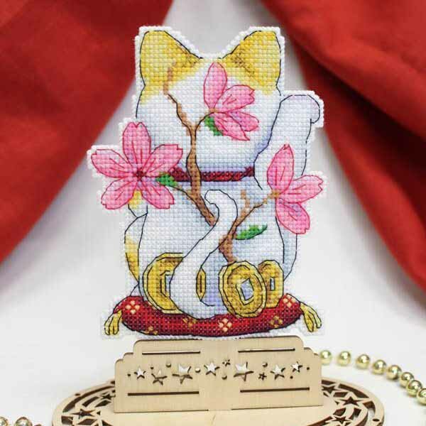 Набор для вышивания на пластиковой канве крестом арт. Р-886 Манеки-неко 13х10см (МП Студия)