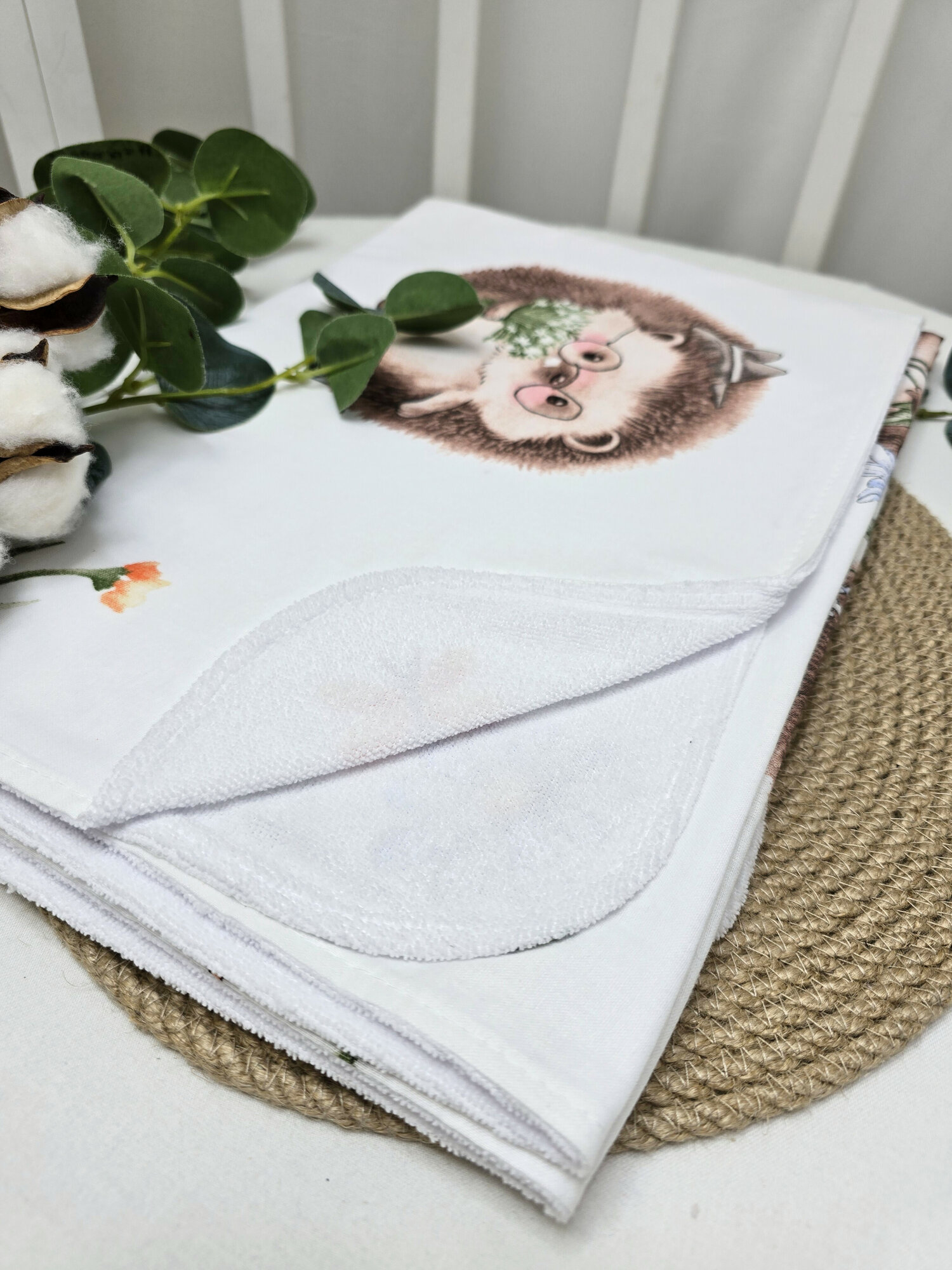 Пеленка текстильная многоразовая непромокаемая хлопок махра клеенка 68х80 см Owl&EarlyBird, набор 2 штуки