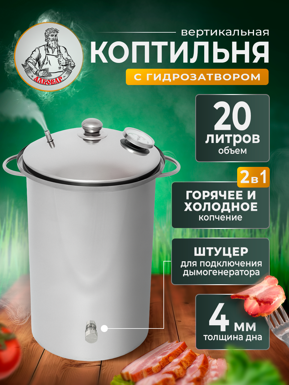 Отзывы на Коптильня горячего копчения с гидрозатвором и с термометром вертикальная