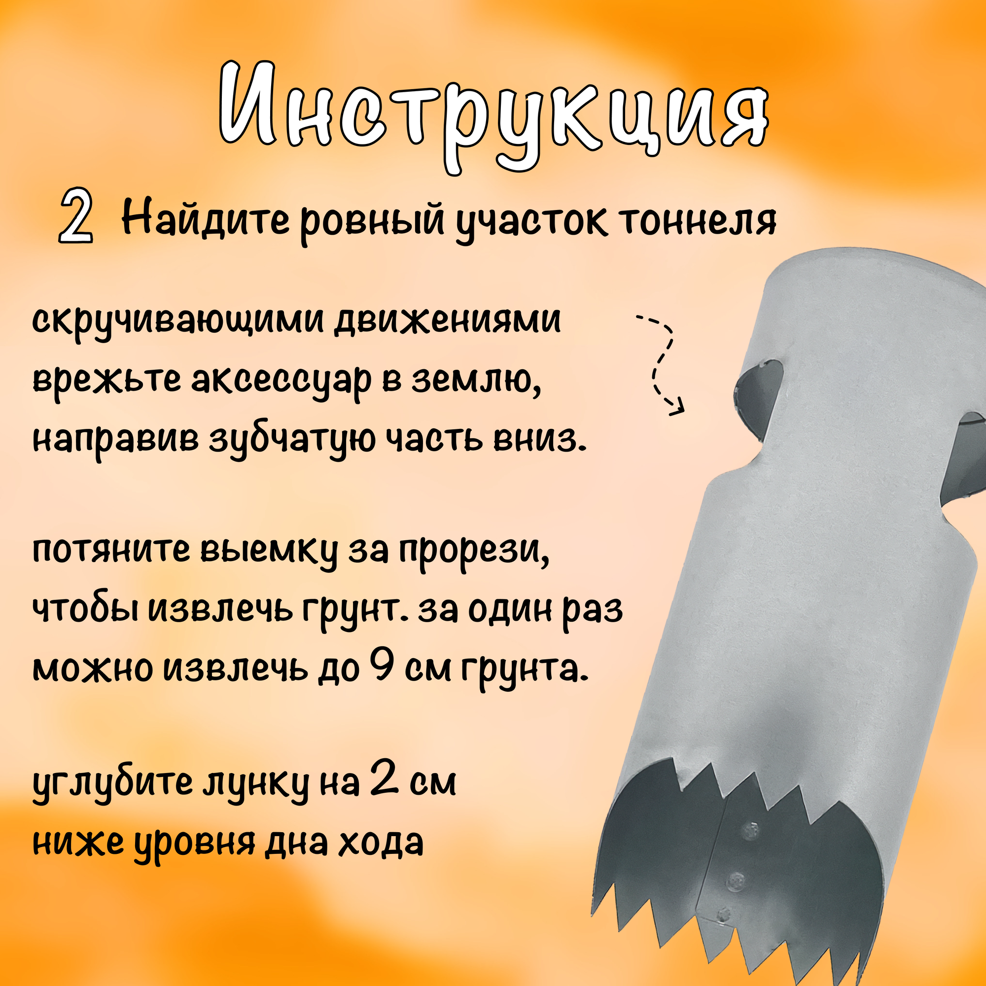 | Дополнительная информация | состав комплекта кротоловка "Пиранья (Vole Trap) Super Fish, аксессуар (Цилиндр) для выемки грунта |