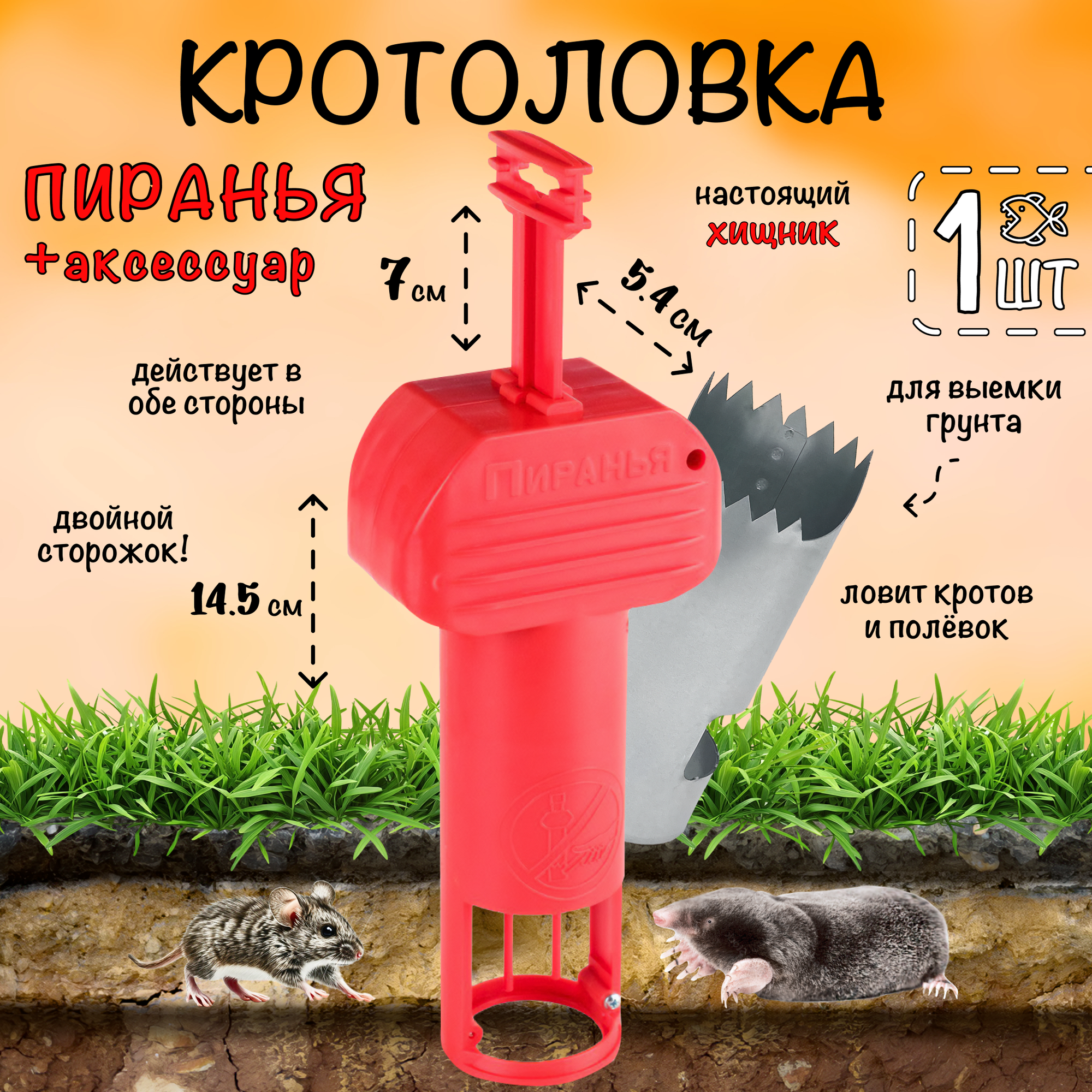 Кротоловка Пиранья, капкан для кротов, мышеловка, цилиндр для выемки грунта, Планета Садовод, Светло/Красный, 1 штука информация: