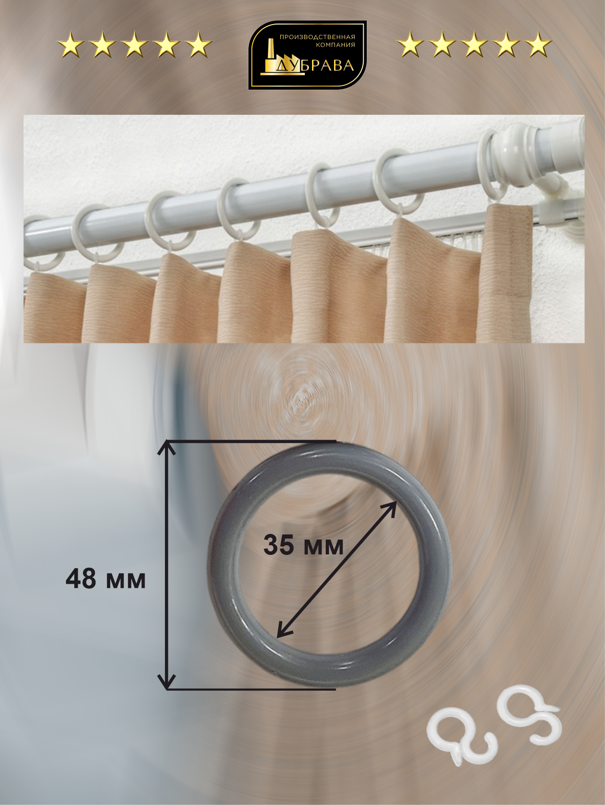 Кольца для штор "Дубрава" с крючками, 35 мм, 30 штук, серые информация: