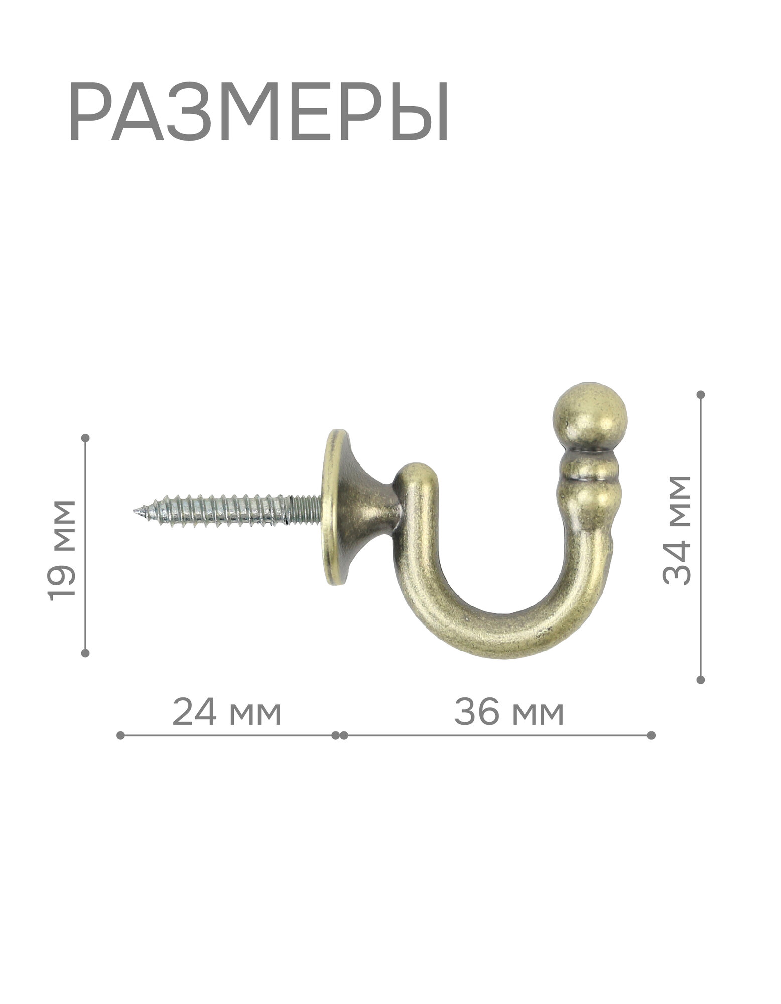 Крючок для шторного подхвата, "Эскар", 34х36 мм, металл, Золото антик, 2 шт. информация:
