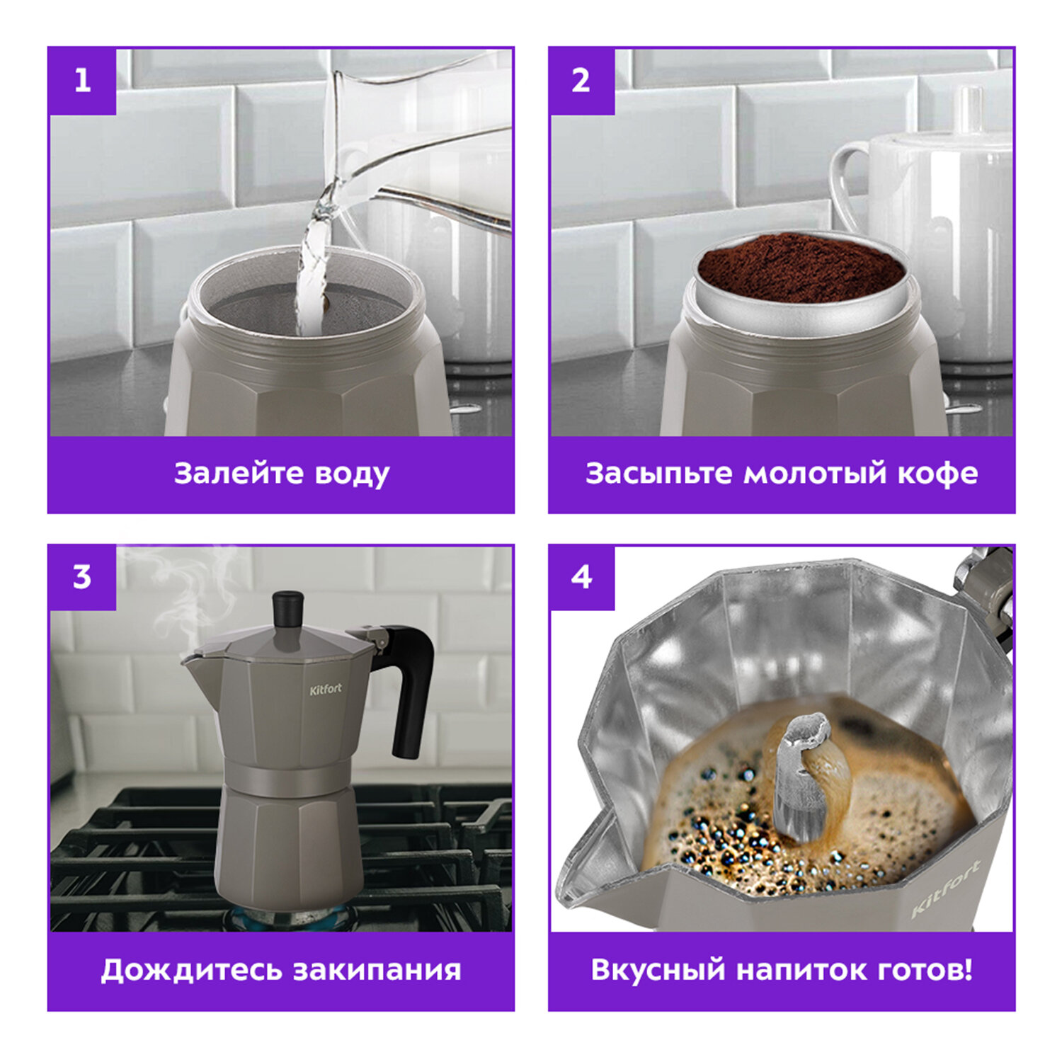 10 цен на KITFORT Кофеварка гейзерная хаки КТ-7147-1