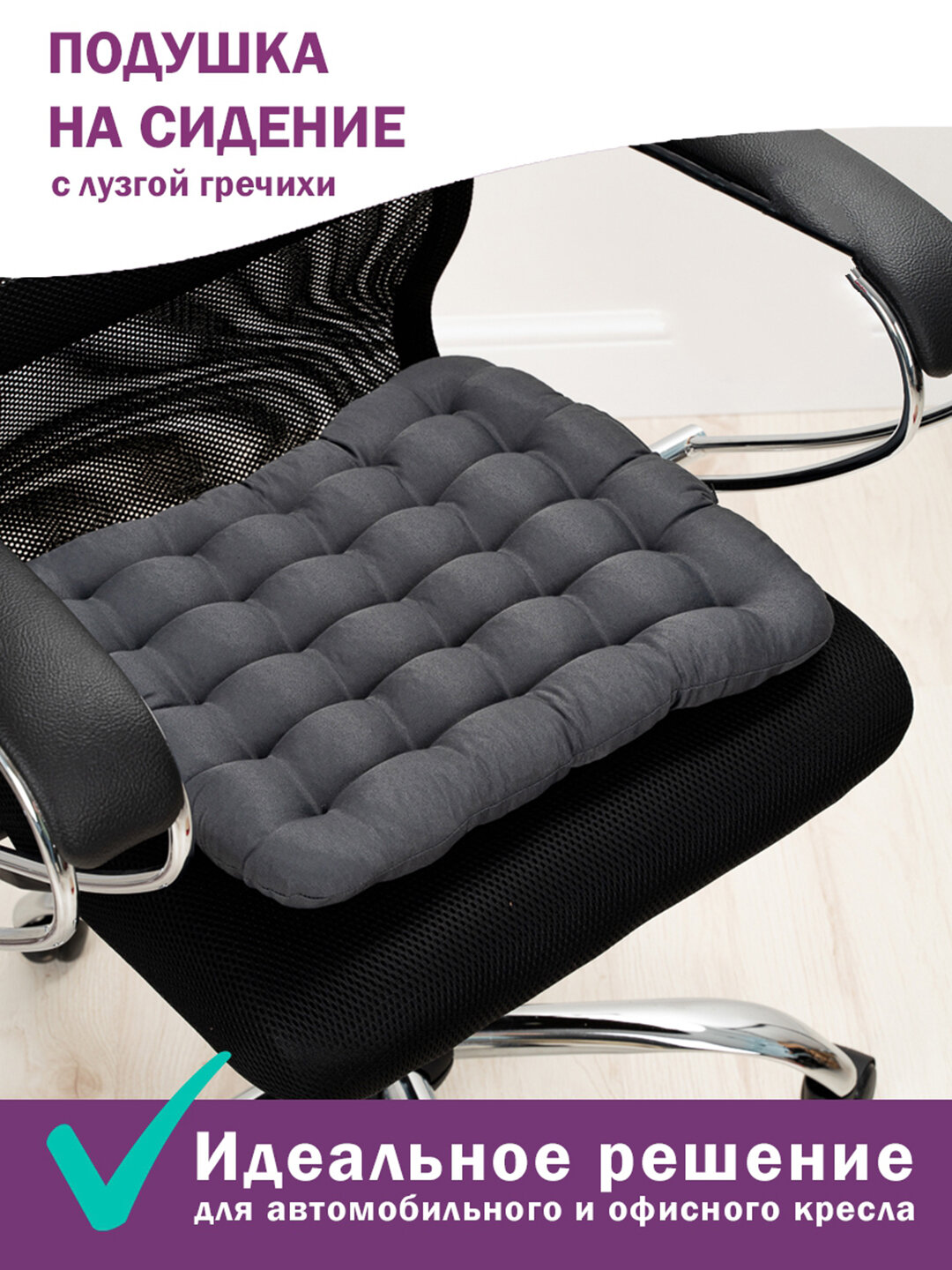 Отзывы на Подушка на стул ортопедическая с лузгой гречихи Bio-Line ,для кресла,в автомобиль,для школьника,40х40 см,, серый
