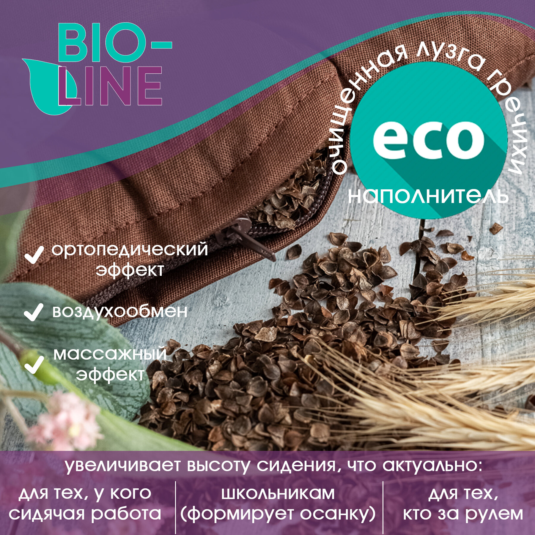 Ортопедическая подушка на стул с лузгой гречихи Bio-Line , универсальная, на сиденье офисного кресла, в автомобиль,40х40 см