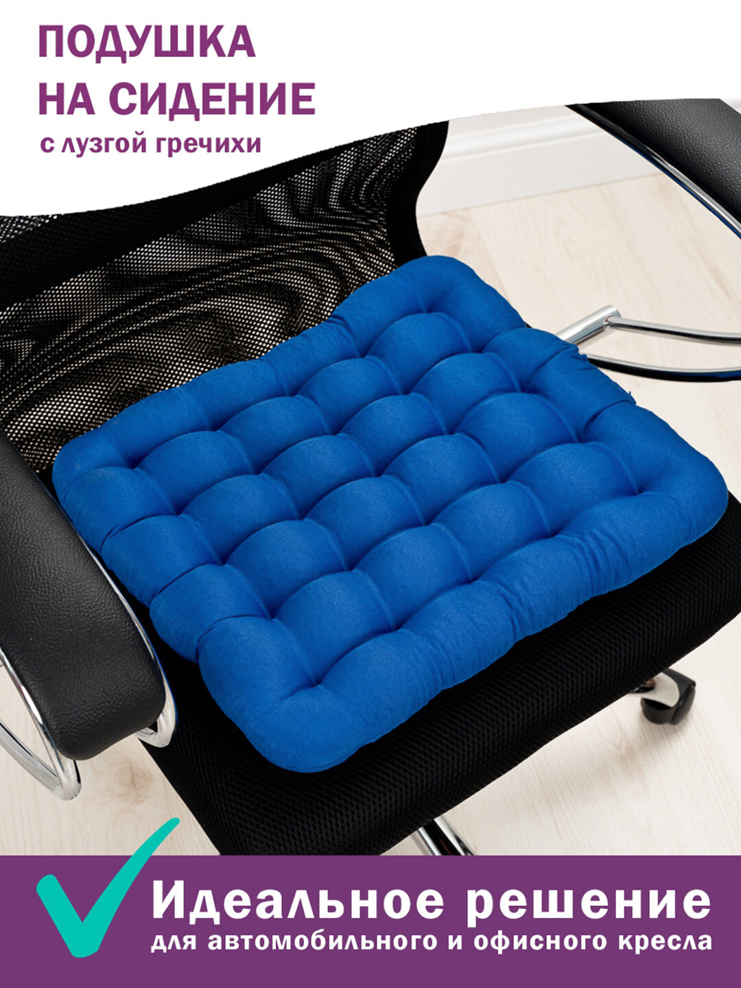 Подушка на стул ортопедическая с лузгой гречихи Bio-Line ,для кресла,в автомобиль,для школьника,40х40 см, синий информация: